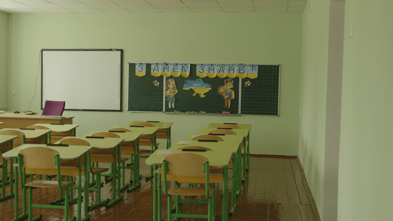 It’s almost 10 AM, and the schoolyard of the Mykhailo-Kotsiubynsky Lyceum in the Chernihiv region is packed with pupils, parents, teachers, and even village residents. Everyone has gathered here for the first day of the new academic year. This time it is particularly special: the fully renovated Lyceum is finally reopening its doors after being heavily damaged in a Russian missile attack on March 4, 2022. But before the official ceremony has a chance to begin, an air raid alarm sounds, sending everyone down to the bomb shelter.