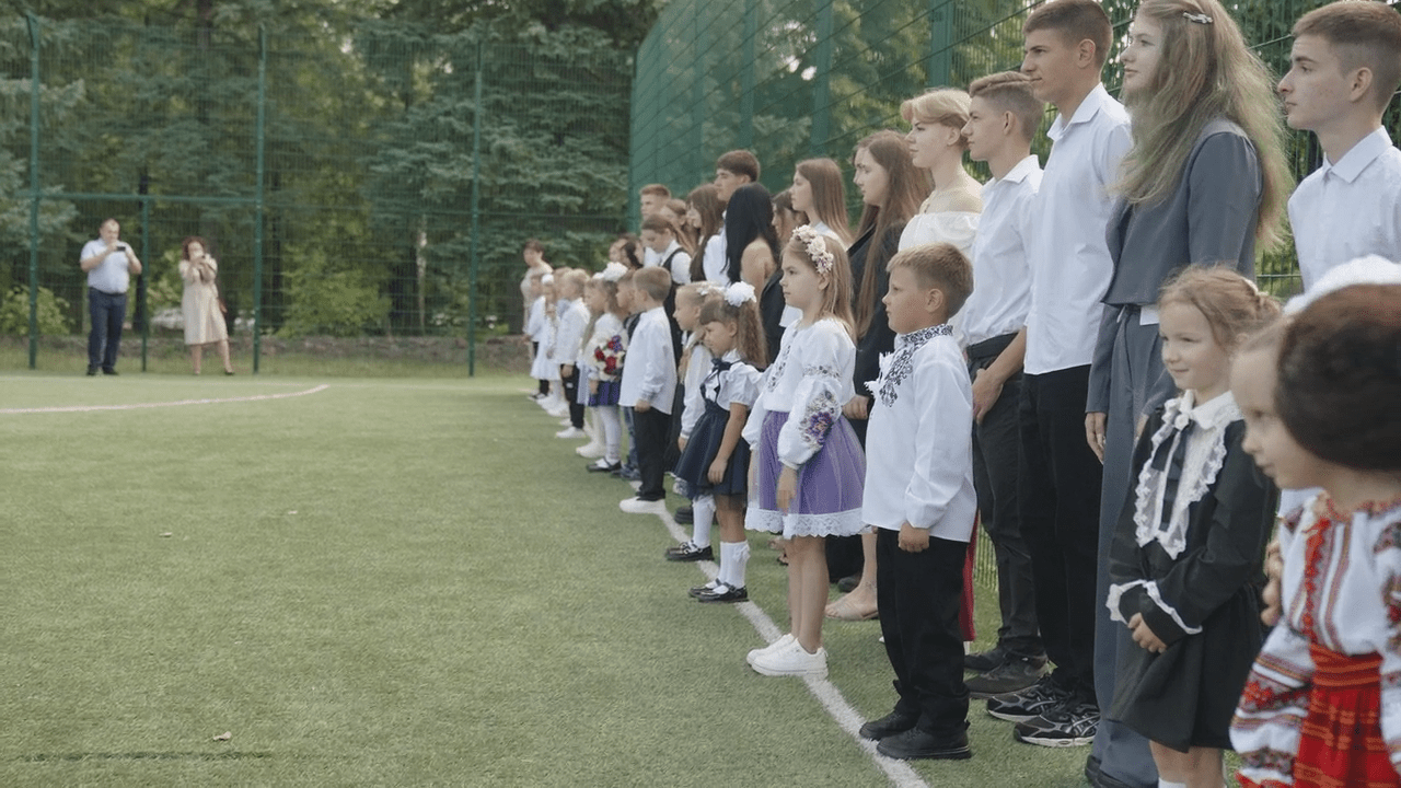 Meanwhile, the school bell in the Mykhailo-Kotsybynsky Lyceum signals that the air raid is over. Everyone gathers in the schoolyard—once again. The 11th graders—those who will be bidding farewell to these walls in a year—take the hands of first-graders, who still have a lot of time here ahead of them.
