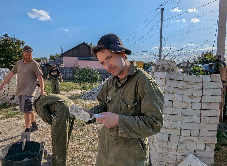 There, alongside Ukrainians and other foreigners, he helped rebuild a home destroyed during the occupation. He learned construction from scratch: setting up electricity, spackling walls, cooking for the volunteer camp, even juggling remote work between tasks.