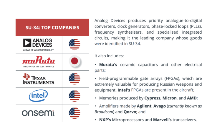 US components are also essential for keeping Russian aviation—such as Su-34 fighter jets—operational.