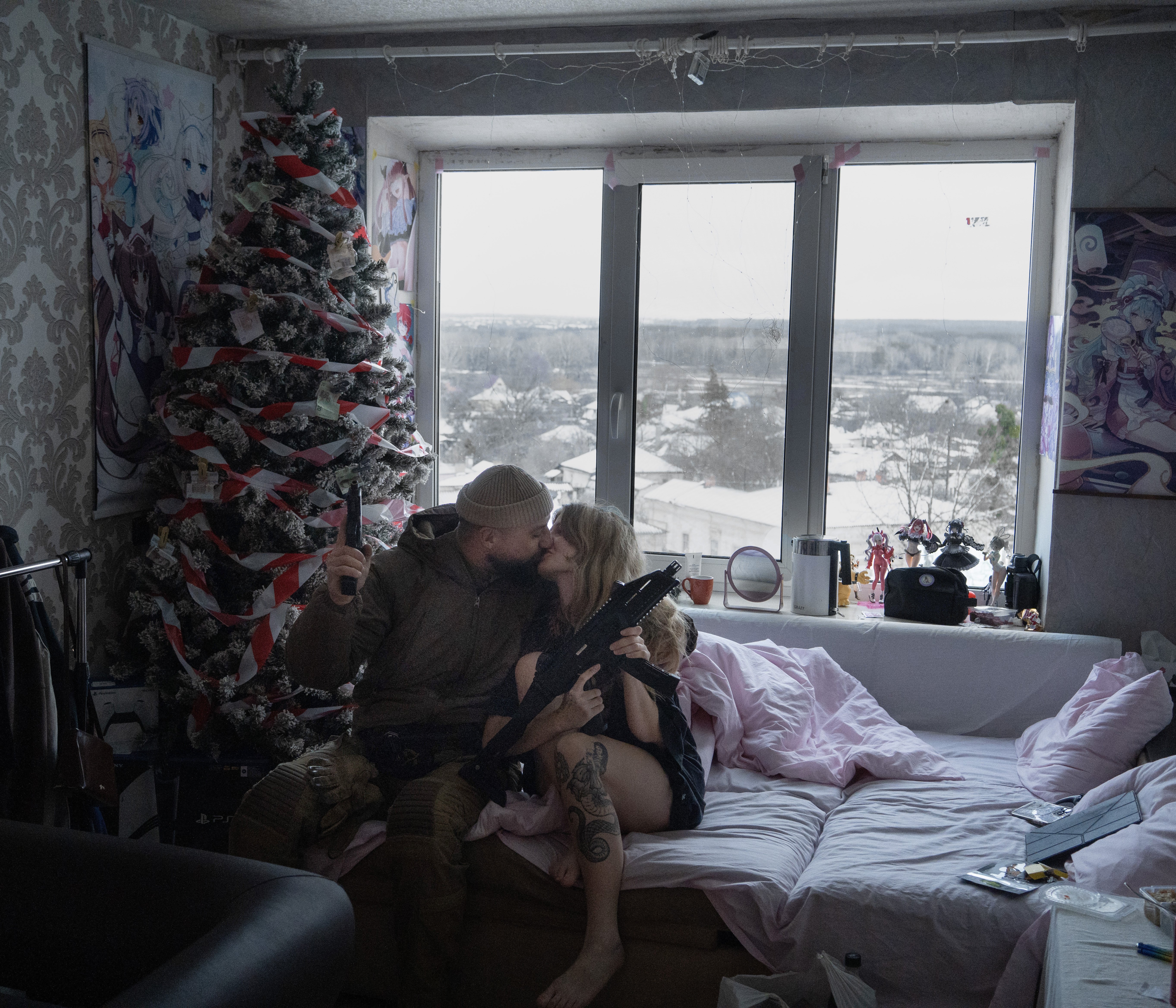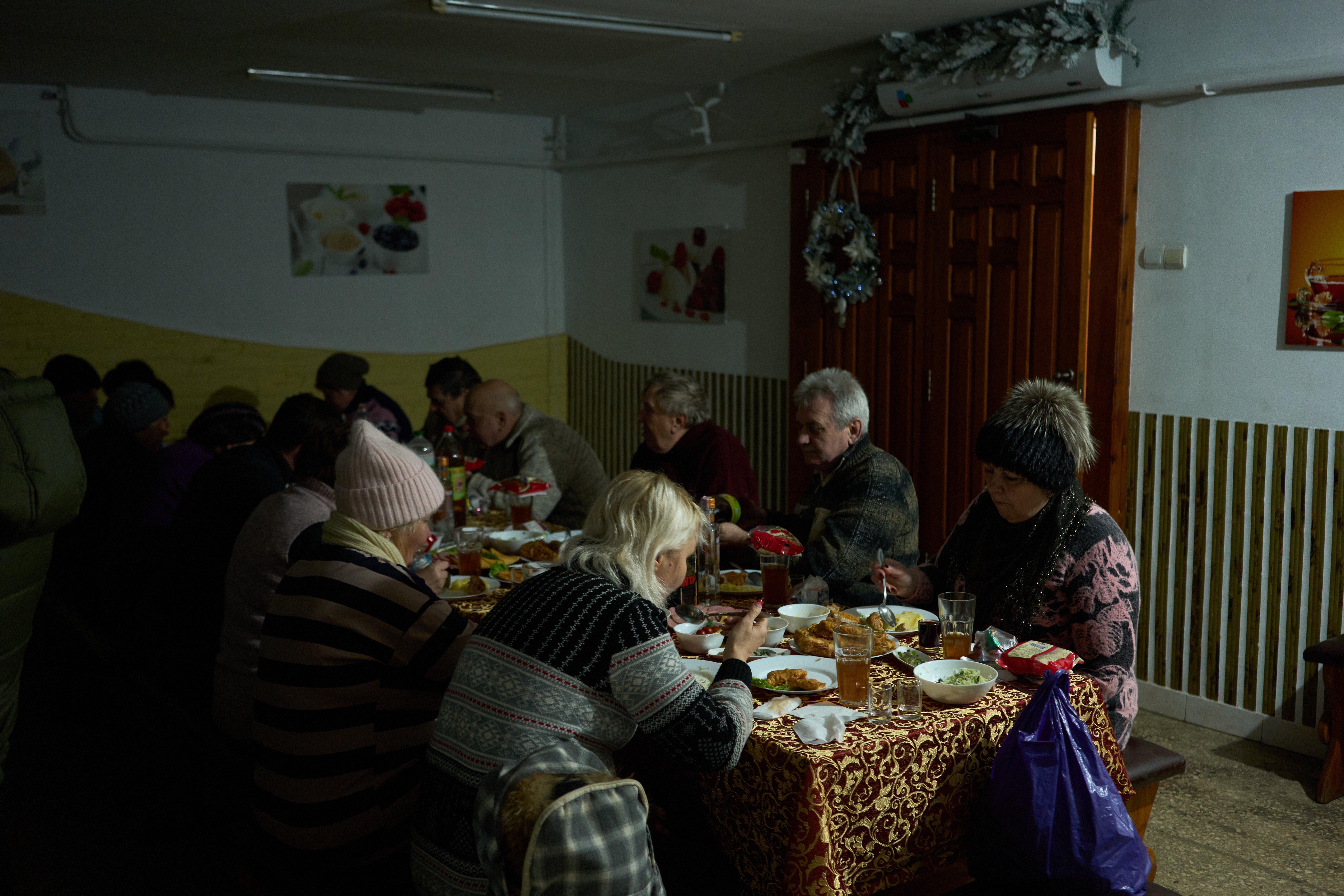 Despite everything, there were small glimpses of Christmas spirit: a woman selling Christmas trees on the street, a string of lights hung inside a living room, or a prized tree driven all the way from Odesa.