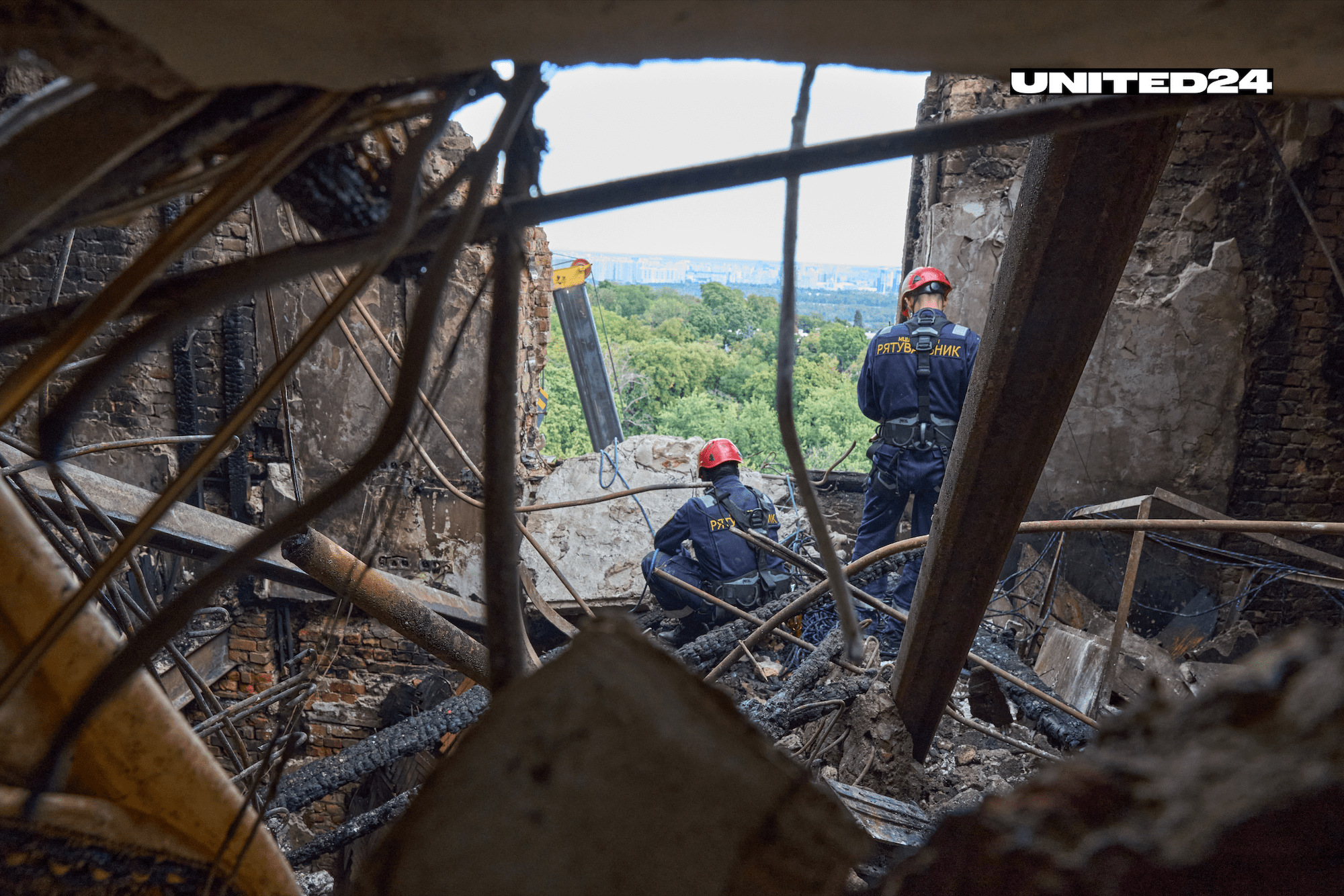 On the morning of September 7, Russia launched 805 drones and 13 missiles against Ukrainian cities. Some of them struck Kyiv, including the government district where the Presidential Office, Ukrainian Parliament, and Cabinet of Ministers are located. It was the latter — a landmark structure built in 1938 — that sustained heavy damage. The UNITED24 Media team visited the site of the impact.