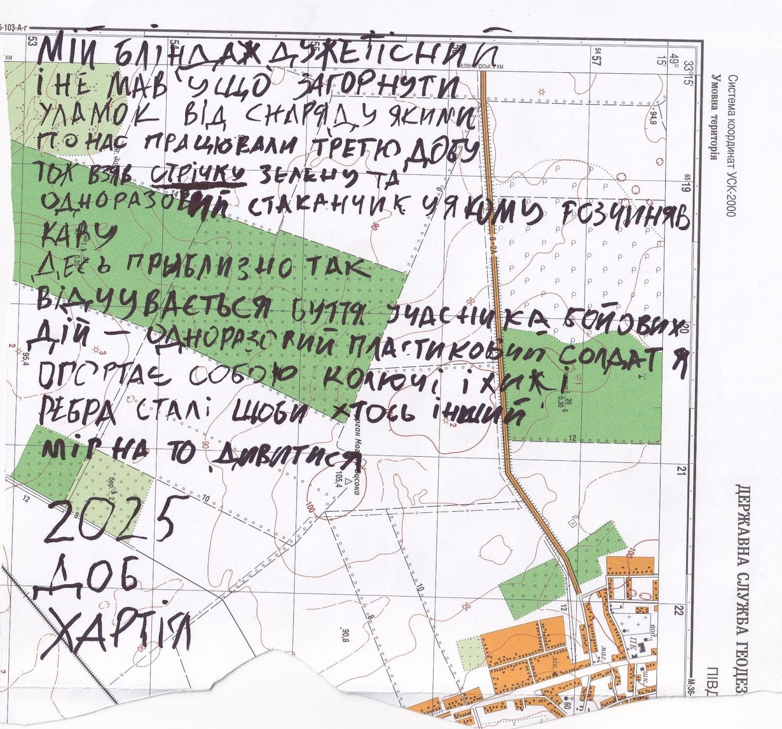 Fotovramci photography company supported me—this is how 25 disposable cameras were sent to servicemen and women across Ukraine’s different fronts. Each soldier was asked to capture whatever they wanted: their routines, their work, their silences, their landscapes. And when the cameras came back, they returned with something more: a personal artifact, a handwritten letter, and a fragment of memory.