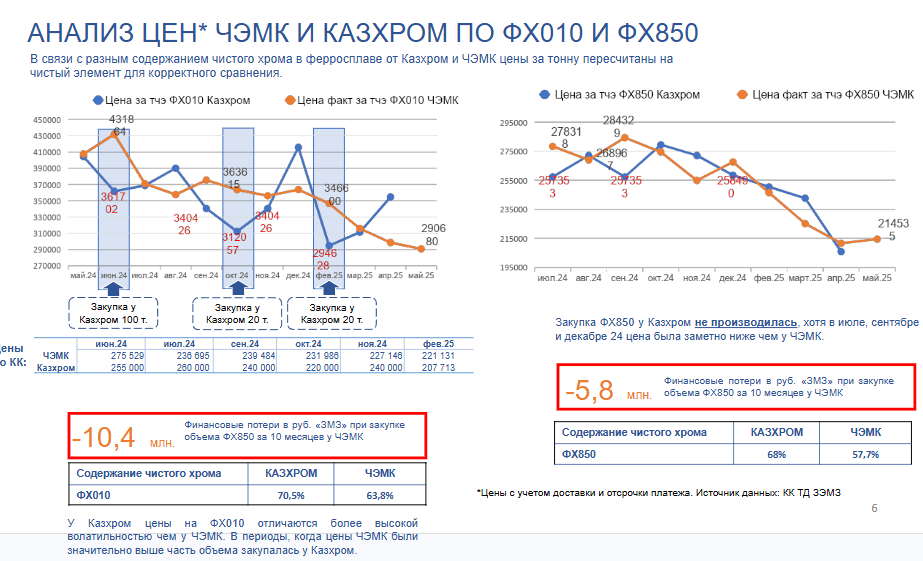We also have access to an internal presentation from ZEMZ Trading House analysing ferrochrome procurement under contracts with Chelyabinsk Electrometallurgical Plant.