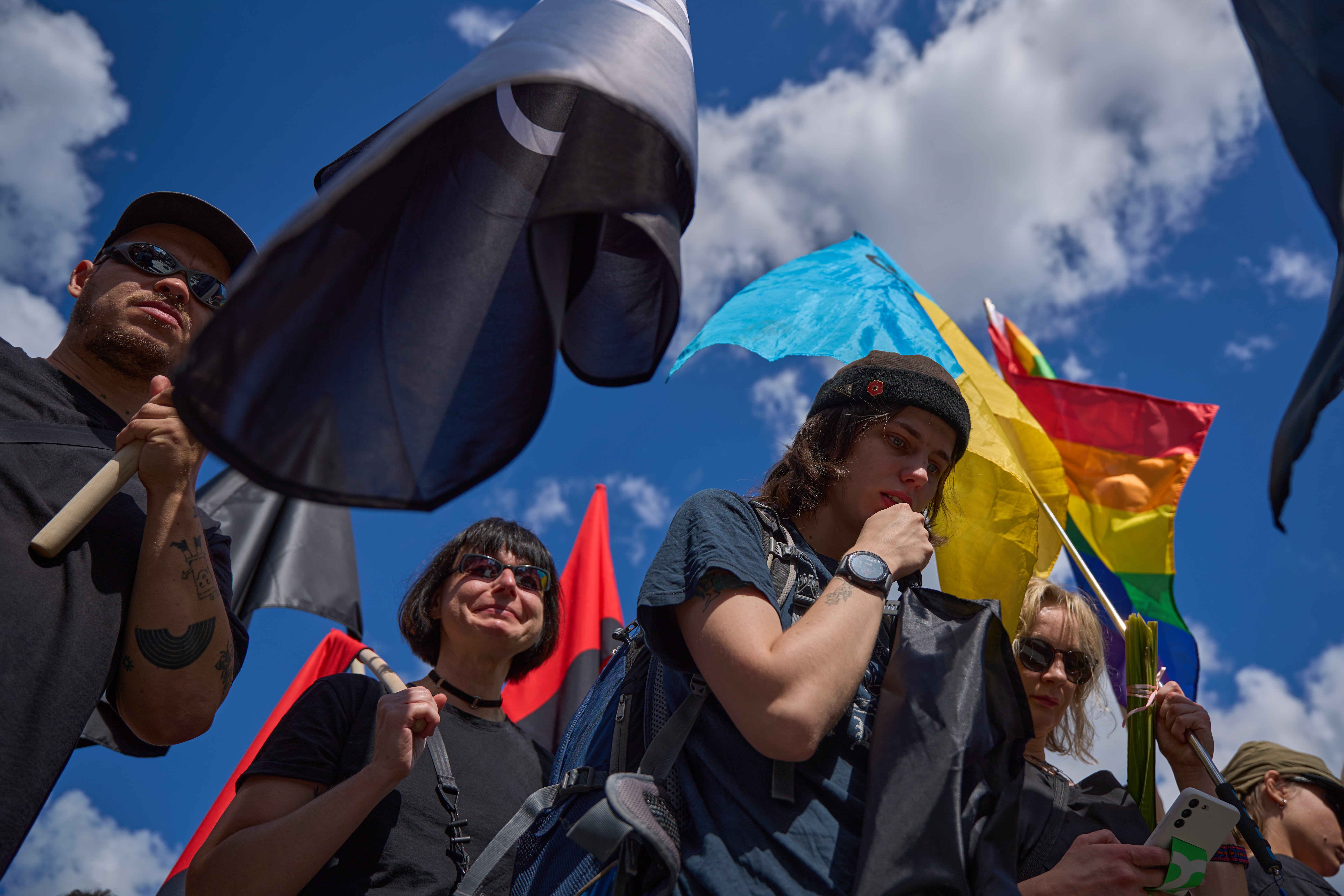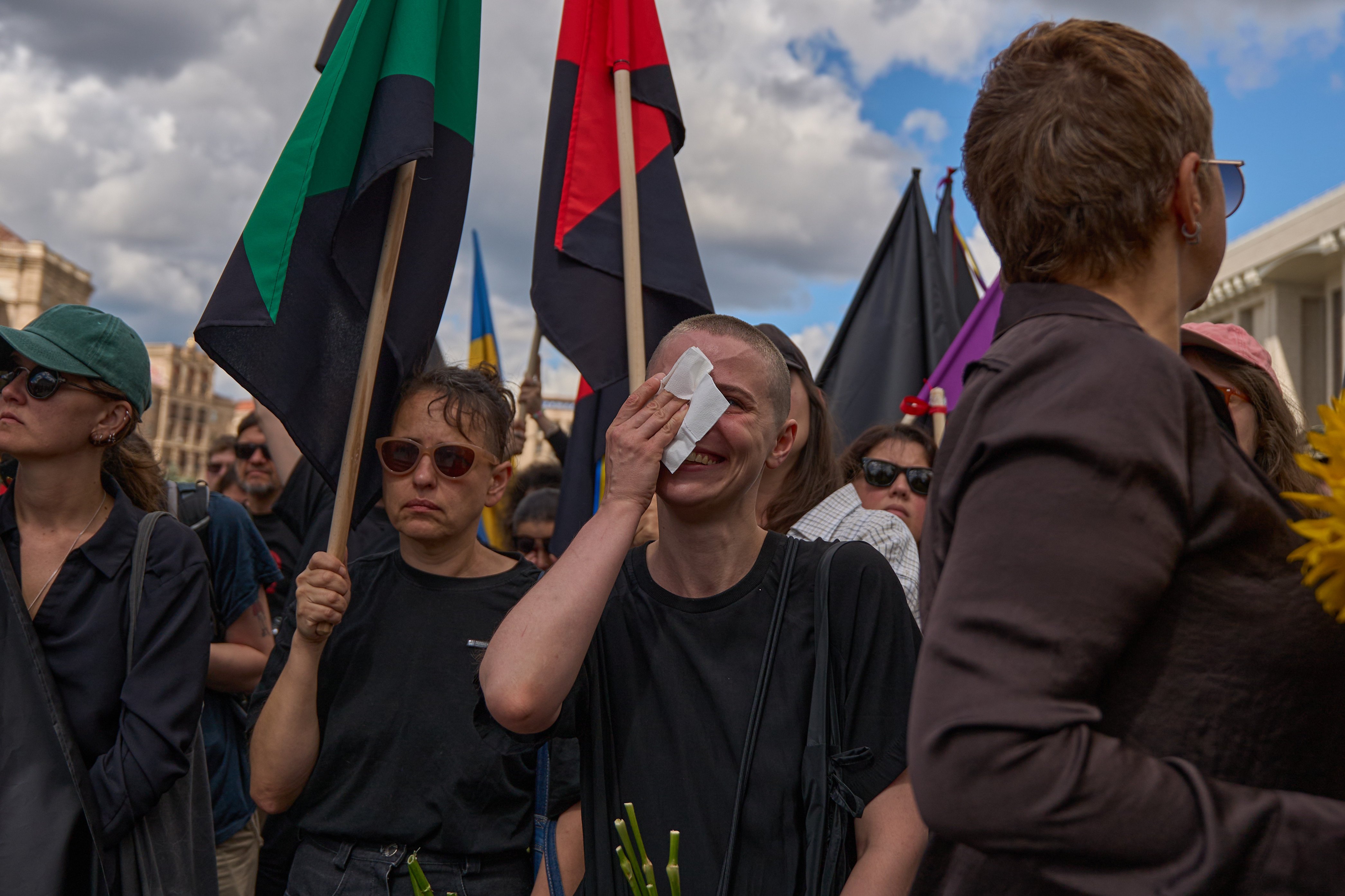 During the ceremony, attendees carried Ukrainian flags alongside anarchist banners, reflecting David’s political convictions. He was known for incorporating symbols of minorities into his art, dedicating works to the Roma, LGBTQ community, political prisoners, “outsiders, and underdogs.”
