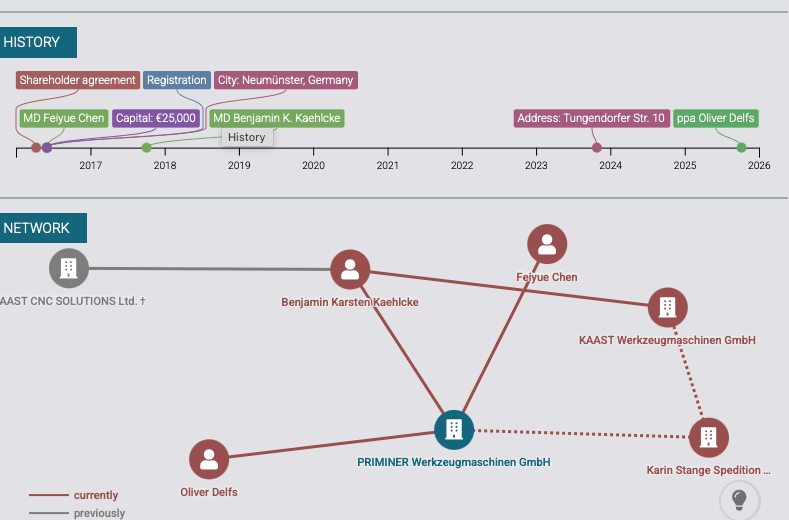 PRIMINER’s “strategic headquarters” in Germany is located in Neumünster, about 40 minutes from Hamburg. The company was founded in 2017 by Mr. Feiyue Chen, who is still listed as managing director, according to the German portal northdata.com.