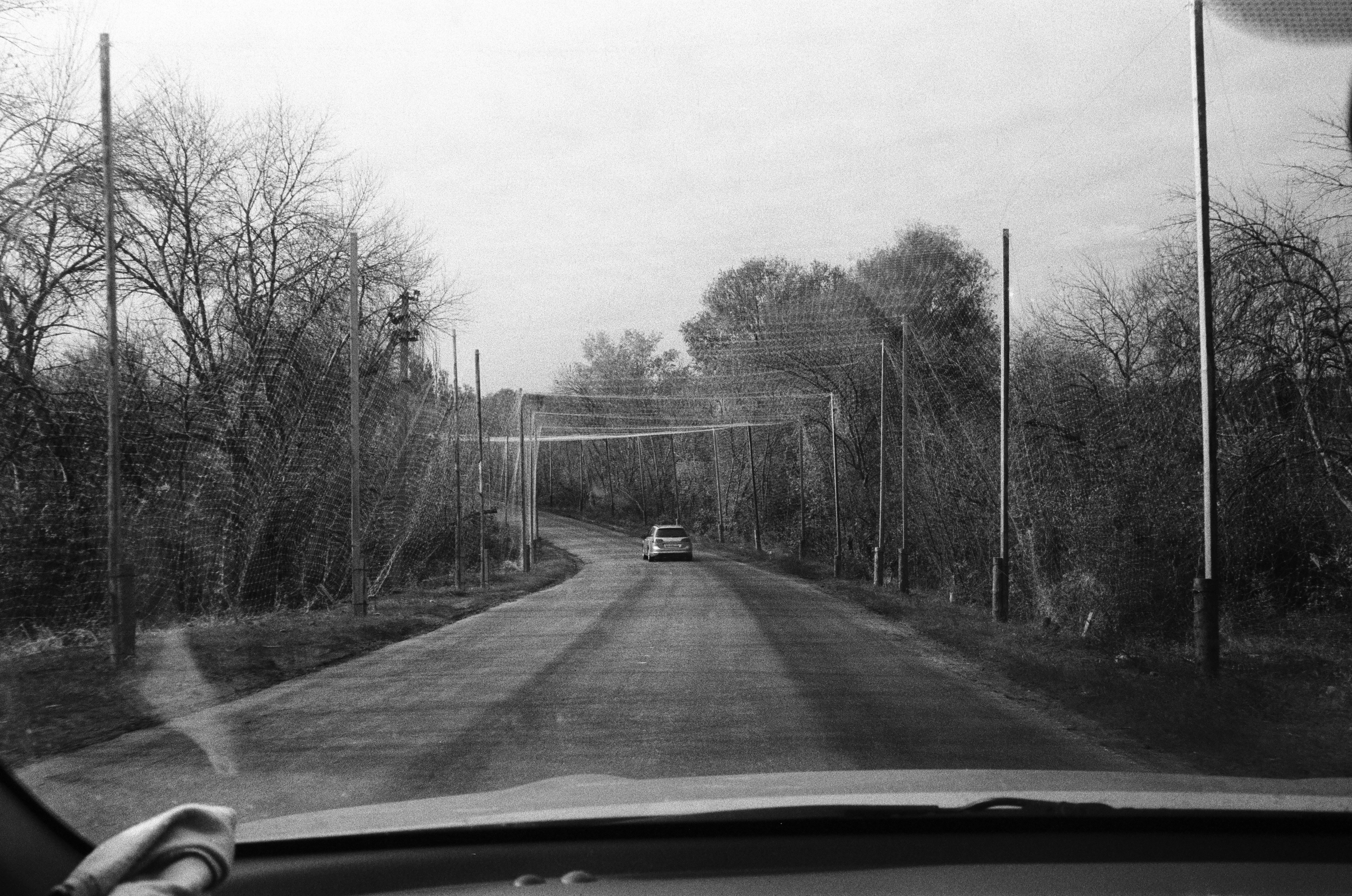 A flashy green quad is in front of us, preceded by a few hillbilly trucks. On top of all of them, anti-drone antenna and soldiers holding shotguns, one hand on the car and eyes on the sky.
