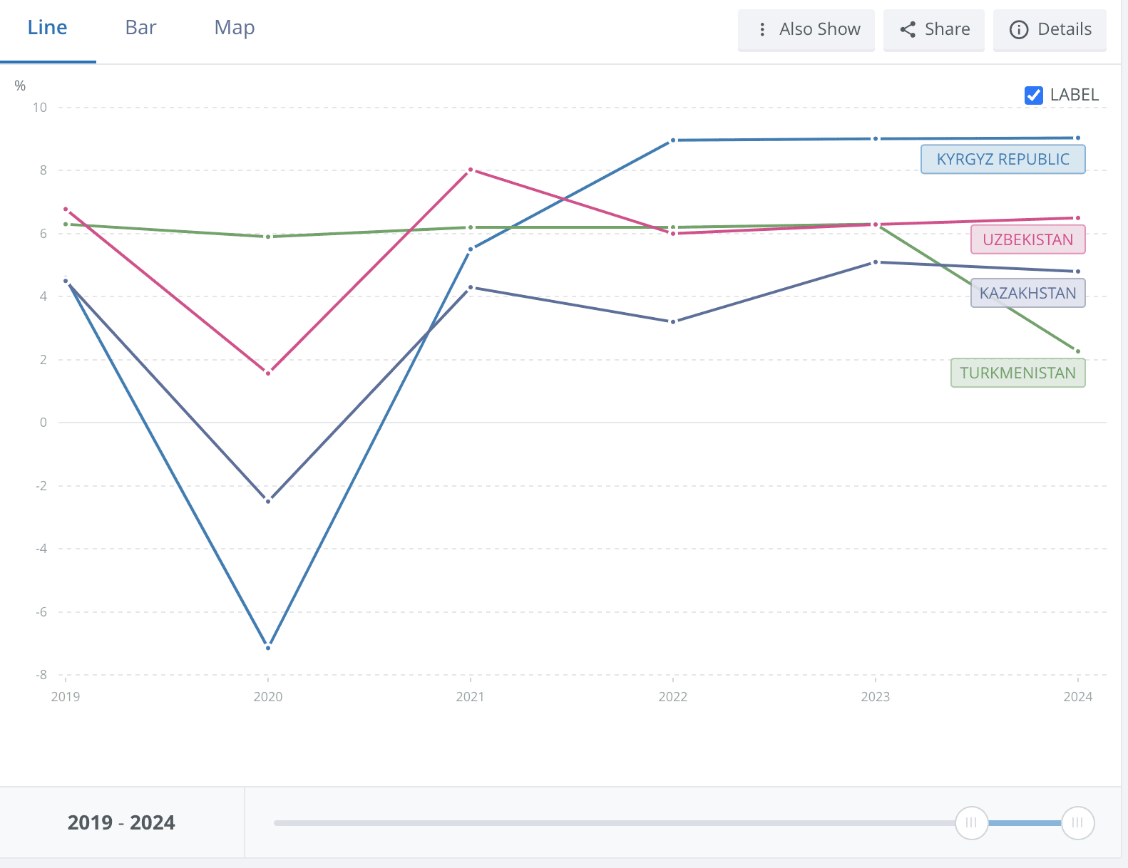 Since 2022, when more than 30% of Kyrgyzstan’s GDP was already made up of remittances from migrant workers, the country has surged ahead of its regional peers in economic growth. In 2024, Kyrgyzstan recorded a 9% GDP increase—well above the global average and even higher than its neighbors.