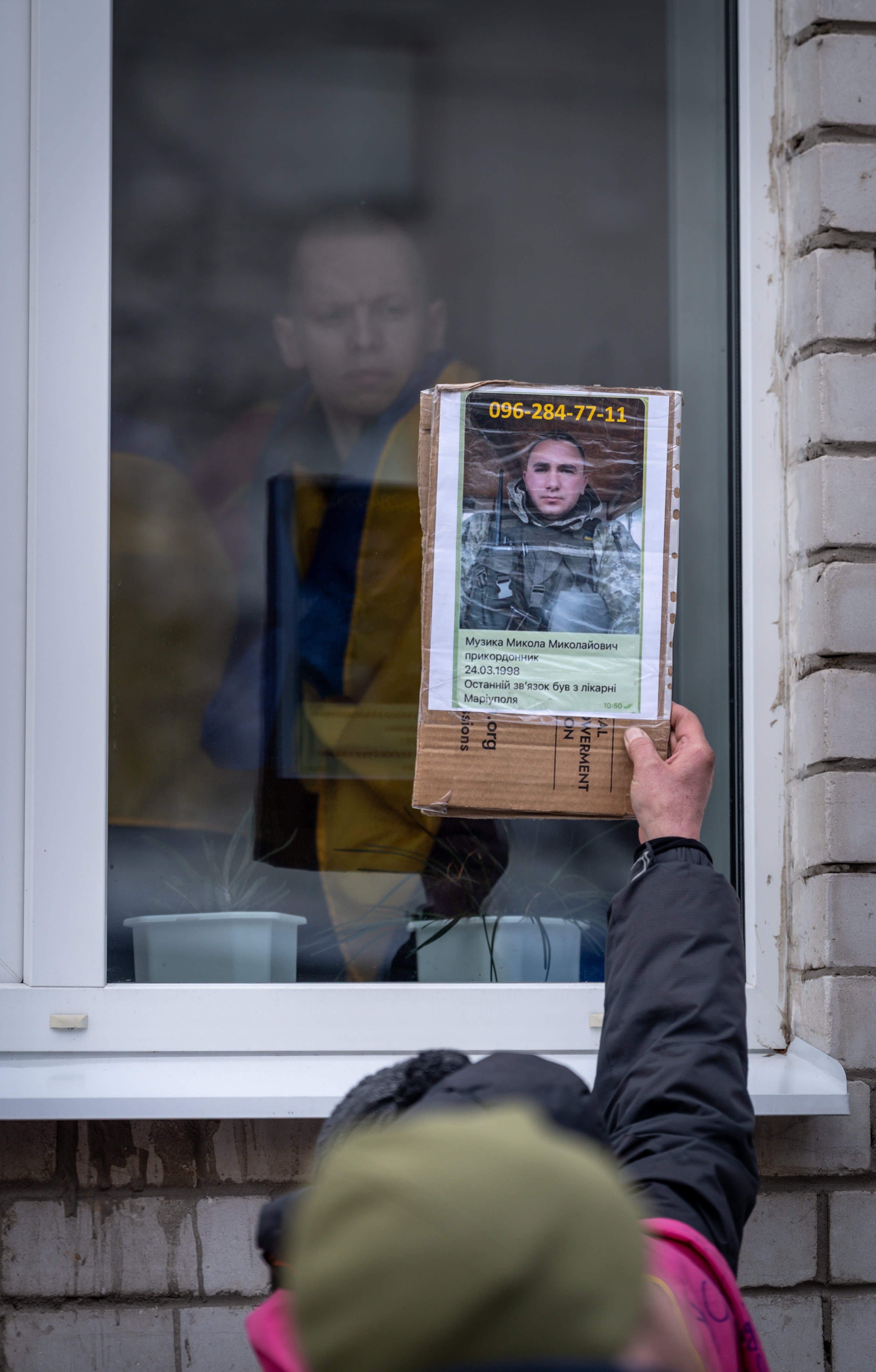 A person shows the photo of their loved one to one of the released, hoping for any information, March 5, 2026, undisclosed location, Ukraine. Photo by Dmytro Ivanov/UNITED24 Media