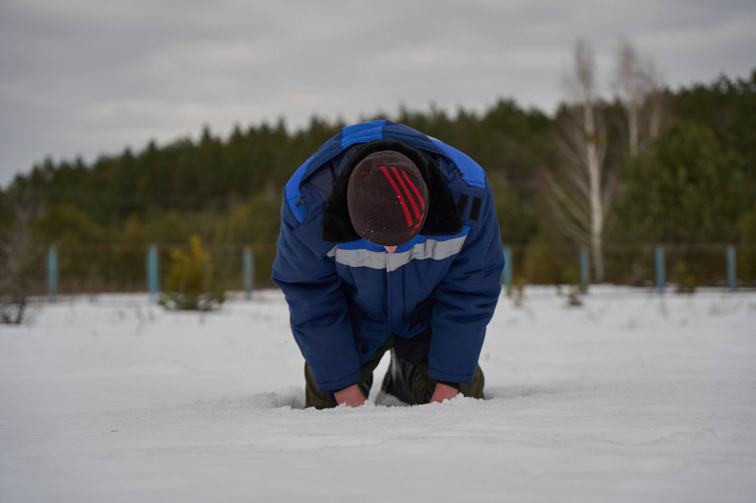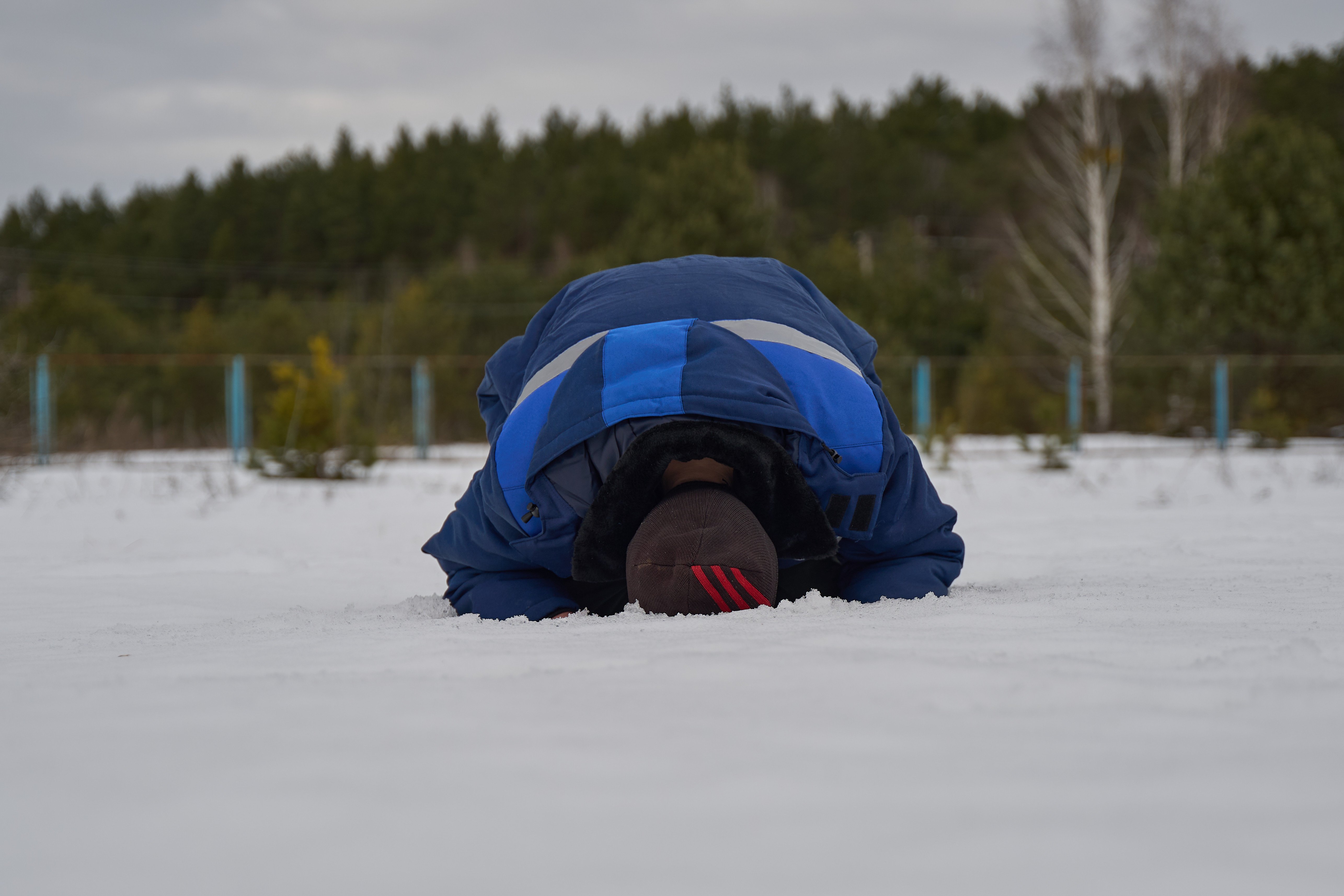 A released defender makes a snow angel after being freed from Russian captivity, March 6, 2026, undisclosed location, Ukraine. Photo by Mykyta Shandyba, UNITED24 Media
