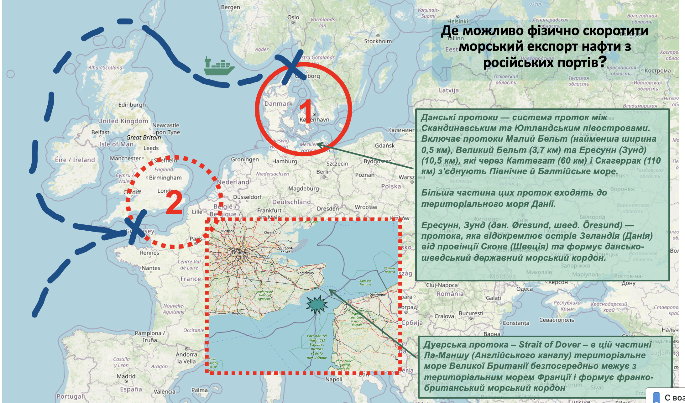 Experts recommend paying particular attention to strategic maritime chokepoints, such as the Danish Straits and the Dover Strait, whose control could significantly complicate Russia’s sanctioned logistics.