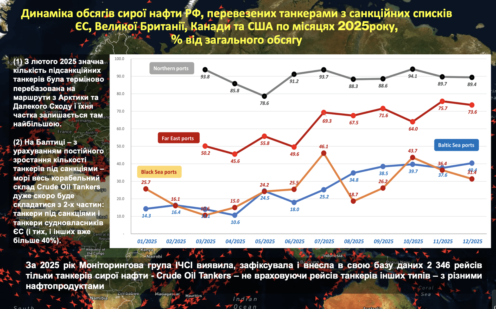 In total, the Monitoring Group recorded 2,346 crude oil tanker voyages in 2025.