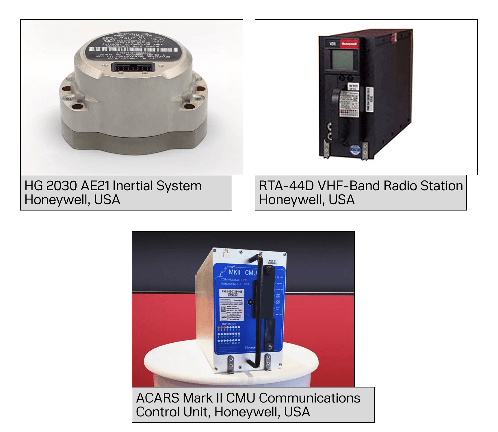 Internal documentation indicates that Russian aviation is highly dependent on Honeywell parts, including the Honeywell HG2030 Inertial System and the Honeywell RTA-44D radio station.