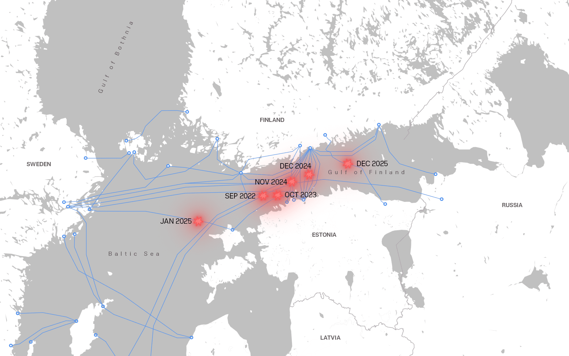 The shadow fleet has been a crucial tool for Russia in disrupting undersea cables, which are essential for data transmission. They have all taken place in the Baltic region. By 2025, 11 incidents had been reported.